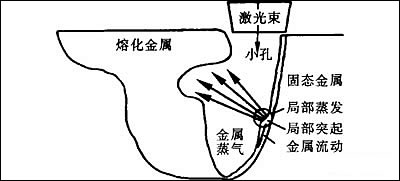 在焊接大厚度鋁合金時,傳統(tǒng)的焊接方法根本不可能單道焊透,而激光深熔焊時形成大深度的匙孔,發(fā)生匙孔效應,則可以得到實現(xiàn)。圖1為激光焊接時的小孔形狀。圖2為激光深熔焊示意圖。